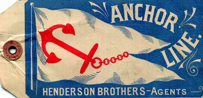 Scotland Transport Steamship Anchor Line Anchoria Luggage Tag 1895 Front