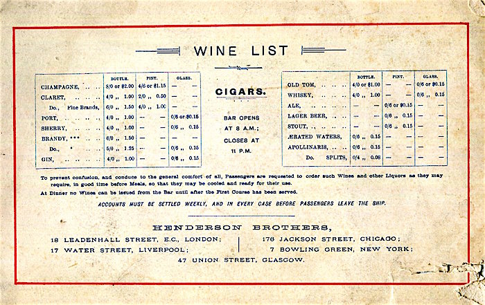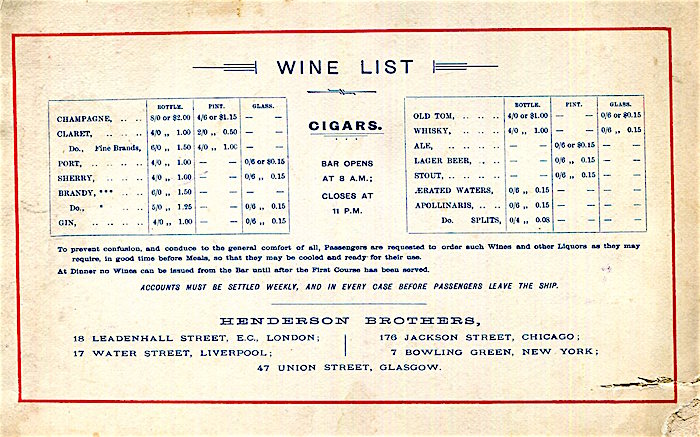 Scotland Transport Steamship Anchor Line Anchoria Menu 1896-1 Back