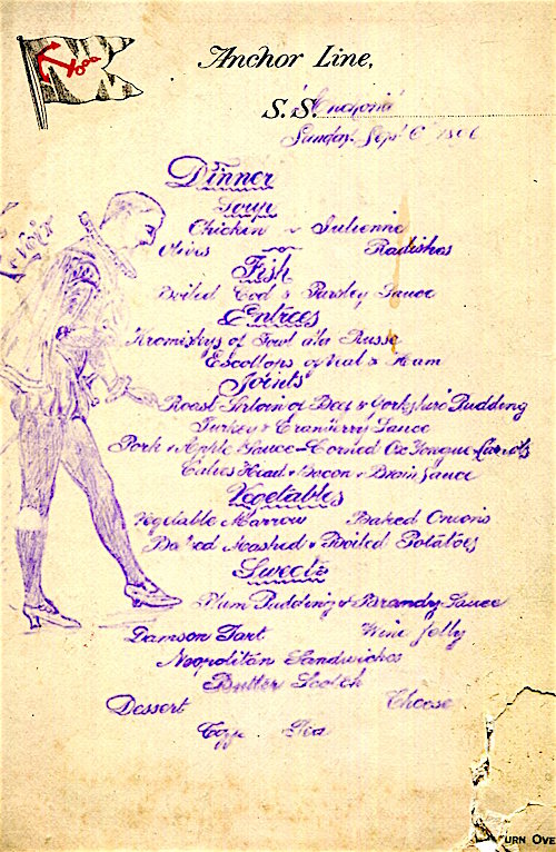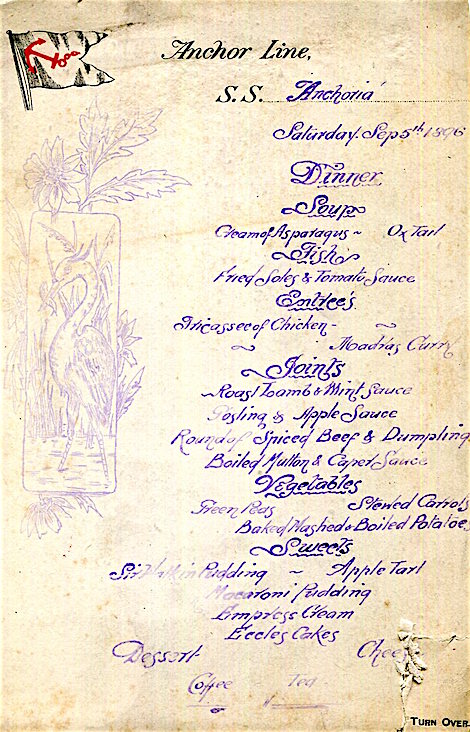 Scotland Transport Steamship Anchor Line Anchoria Menu 1896-2 Front