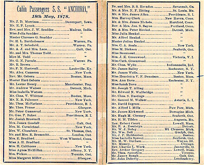 Scotland Transport Steamship Anchor Line Anchoria Passenger List 1878 Inside