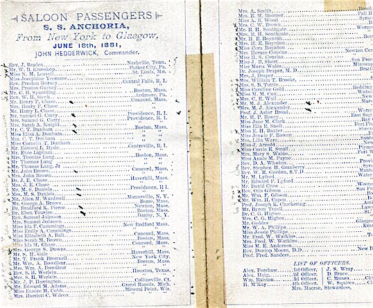 Scotland Transport Steamship Anchor Line Anchoria Passenger List 1881 Front
