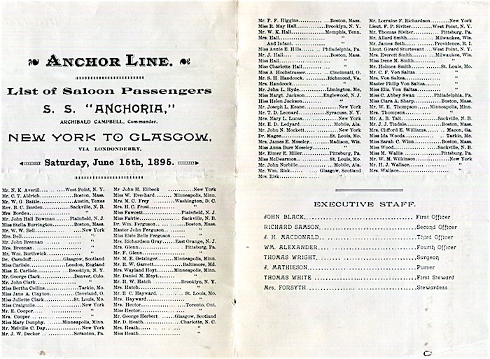 Scotland Transport Steamship Anchor Line Anchoria Passenger List 1895 Inside