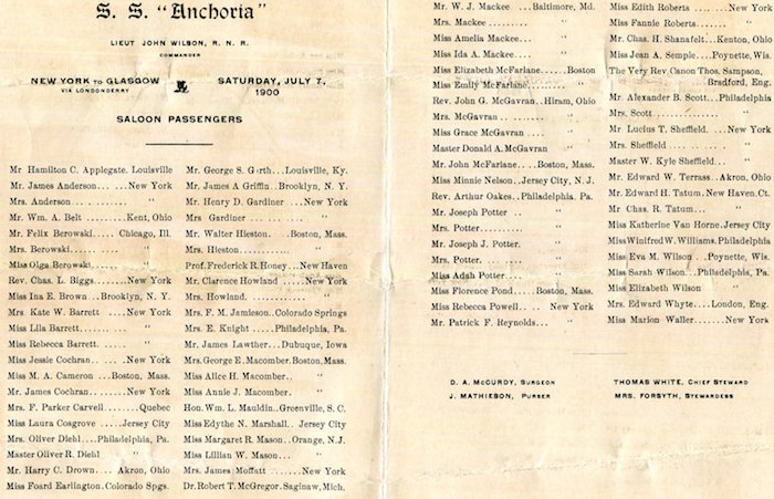 Scotland Transport Steamship Anchor Line Anchoria Passenger List 1900 Inside