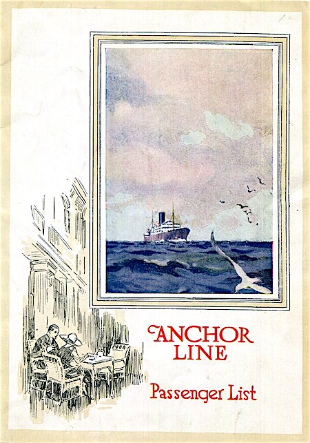 Scotland Transport Steamship Anchor Line Assyria Passenger List 1922 Front