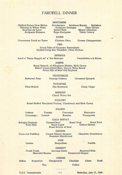 Scotland Transport Steamship Anchor Line Transylvania Menu Farewell Dinner 1936-1 Inside