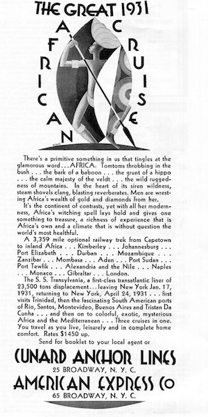Scotland Transport Steamship Anchor Line Transylvania African Cruise Ad 1931