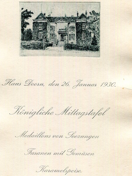 The Netherlands Royalty Doorn Haus Doorn Menu 1930-1
