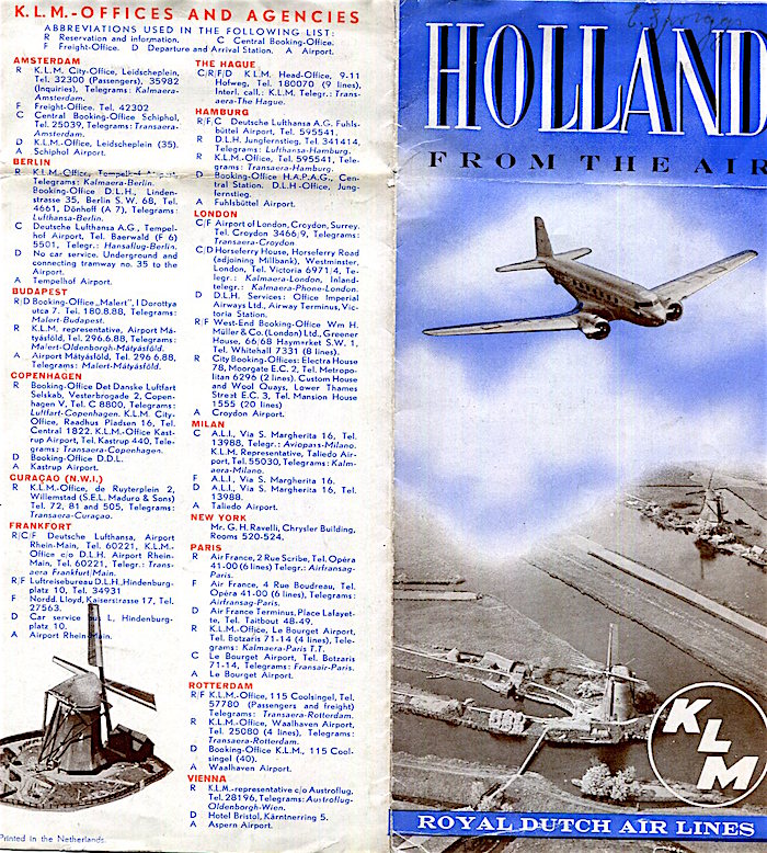 The Netherlands Transport Air KLM Brochure 1930-2 Front