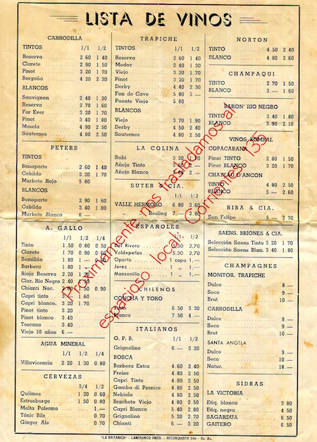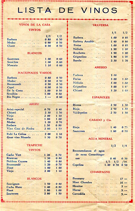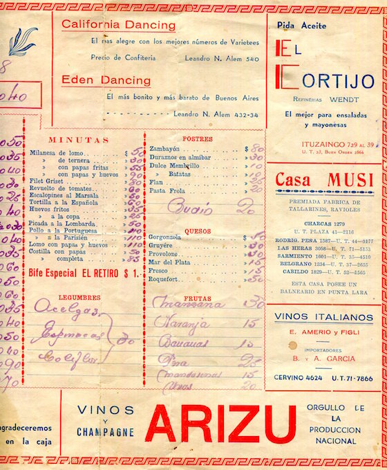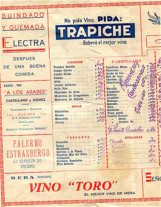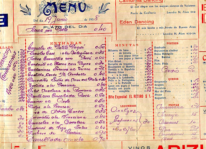 Argentina Buenos Aires Menu Restaurant La Barca De Bachicha 1941 Inside 2