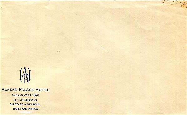 Argentina Buenos Aires Alvear Palace Hotel Stationery 1934