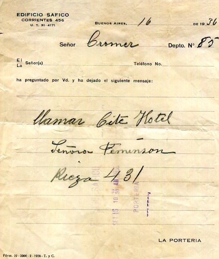 Argentina Buenos Aires Hotel Continental Brochure 1936 Front