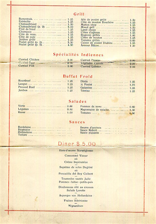 Brazil Rio De Janeiro Grill Room Menu 1916 Back