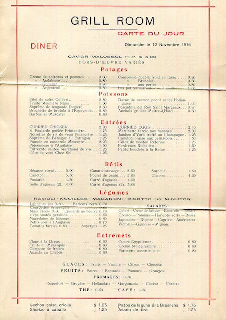 Brazil Rio De Janeiro Grill Room Menu 1916 Front