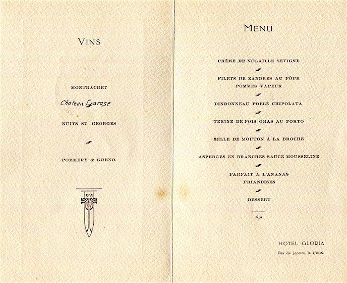 Brazil Rio De Janeiro Hotel Gloria Menu 1922 Inside