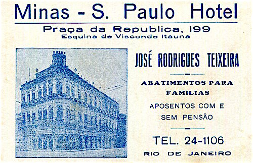 Brazil Rio De Janeiro Minas S Paulo Hotel Business Card 1937