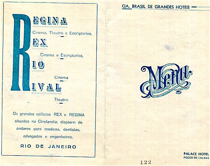Brazil Rio De Janeiro Palace Hotel Menu 1923 Inside