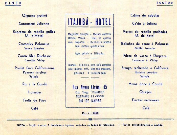 Brazil Rio De Janeiro Palace Hotel Menu 1936 Front