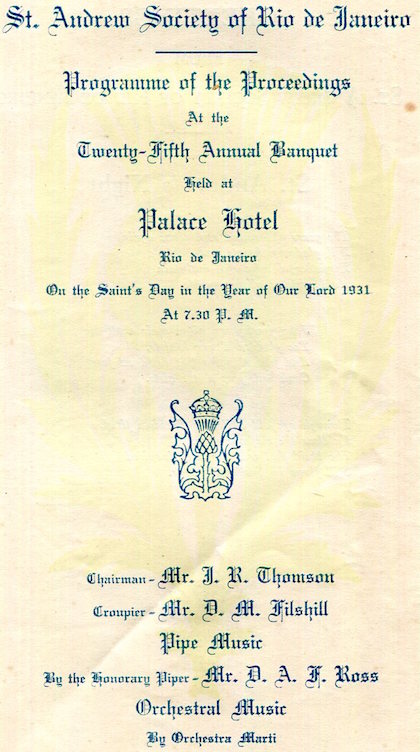 Brazil Rio De Janeiro Palace Hotel Menu St Andrews Society 1931 Inside 2