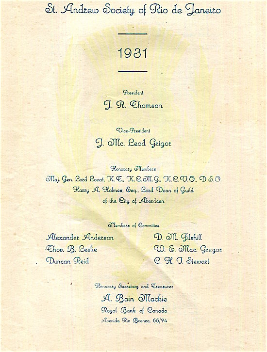 Brazil Rio De Janeiro Palace Hotel Menu St Andrews Society 1931 Inside 8