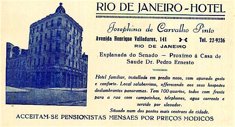 Brazil Rio De Janeiro Rio De Janeiro Hotel Business Card 1937