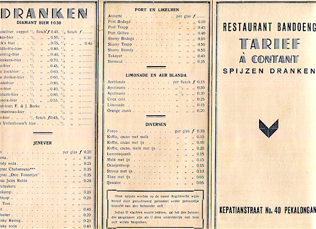 Dutch East Indies Java Pekalongan Restaurant Bandoeng Menu 1937 Inside