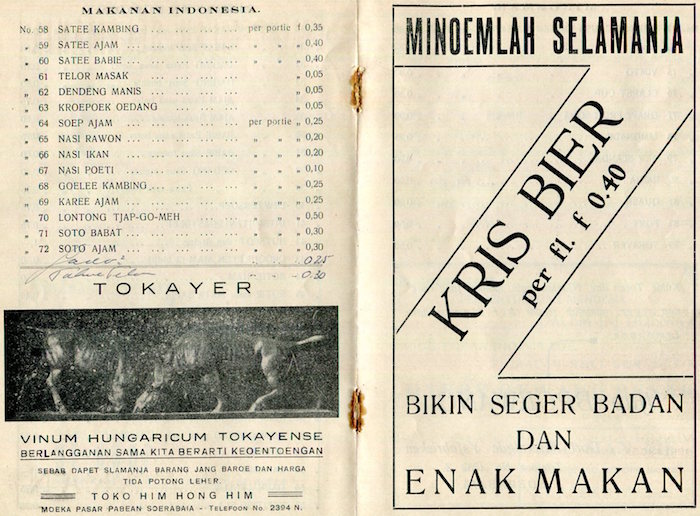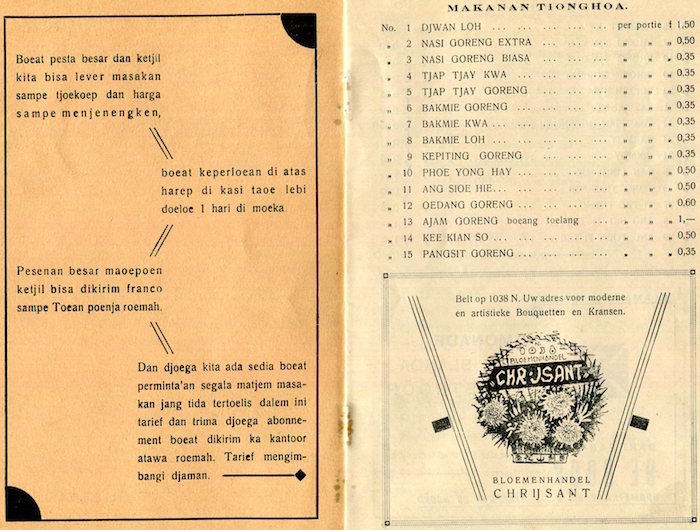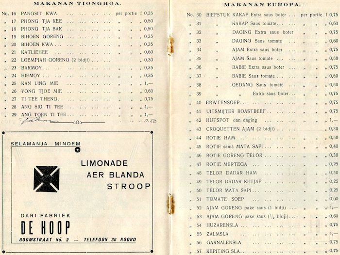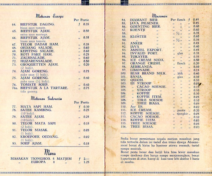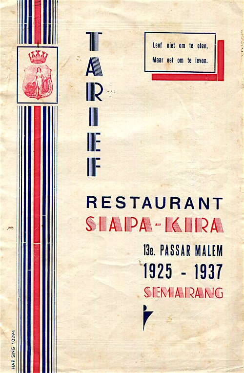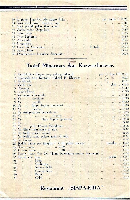 Dutch East Indies Java Semarang Restaurant Siapa Kira Menu 1937 Inside 2