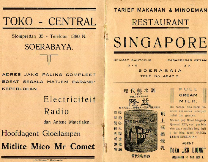 Dutch East Indies Java Soerabaia Restaurant Singapore Menu 1937 Inside 2