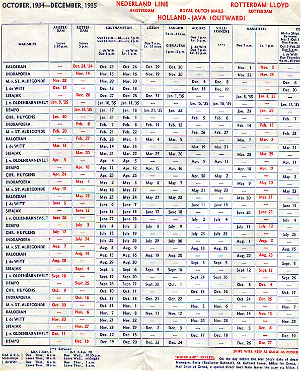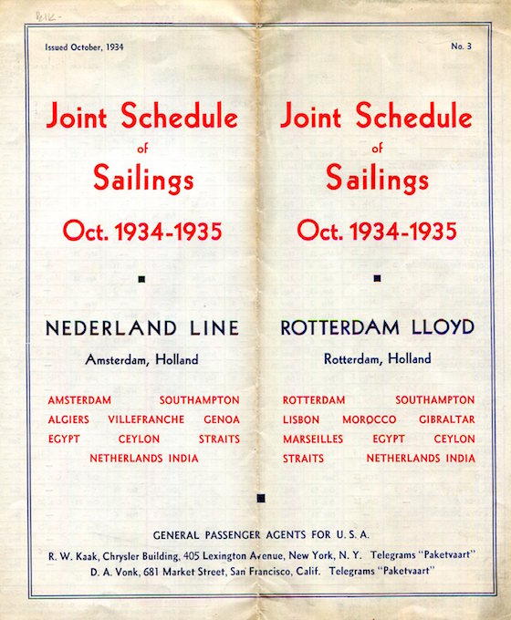 Dutch East Indies Transport Steamships Rotterdam Lloyd Brochure Sailings 1934-1935 Front