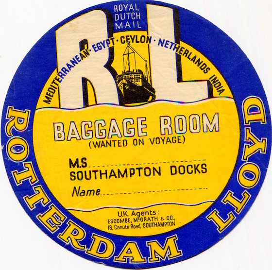 Dutch East Indies Transport Steamships Rotterdam Lloyd Luggage Label 1936