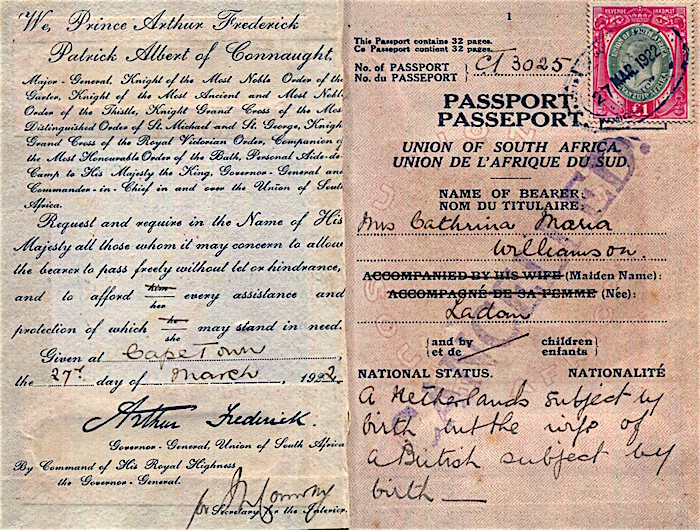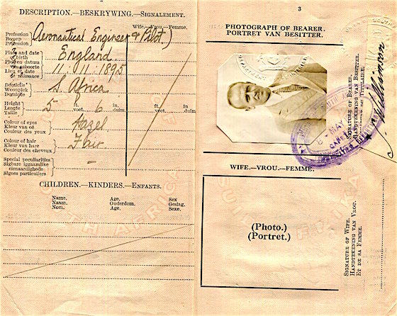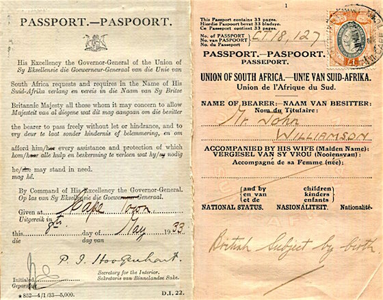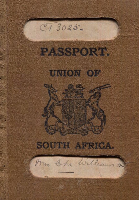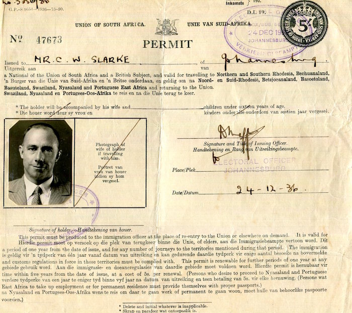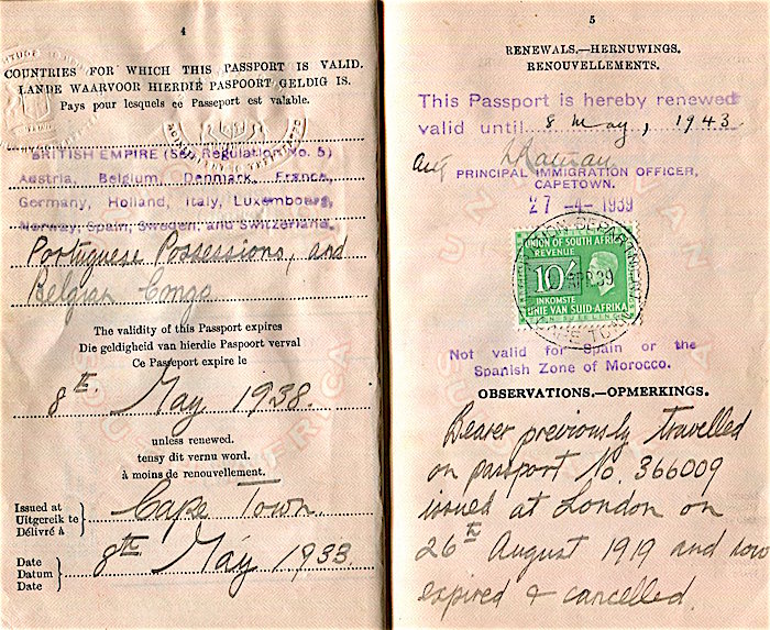 South Africa Passport Union Of South Africa To Northern Southern Rhodesia 1936 Front