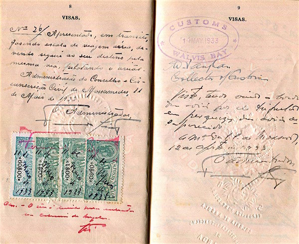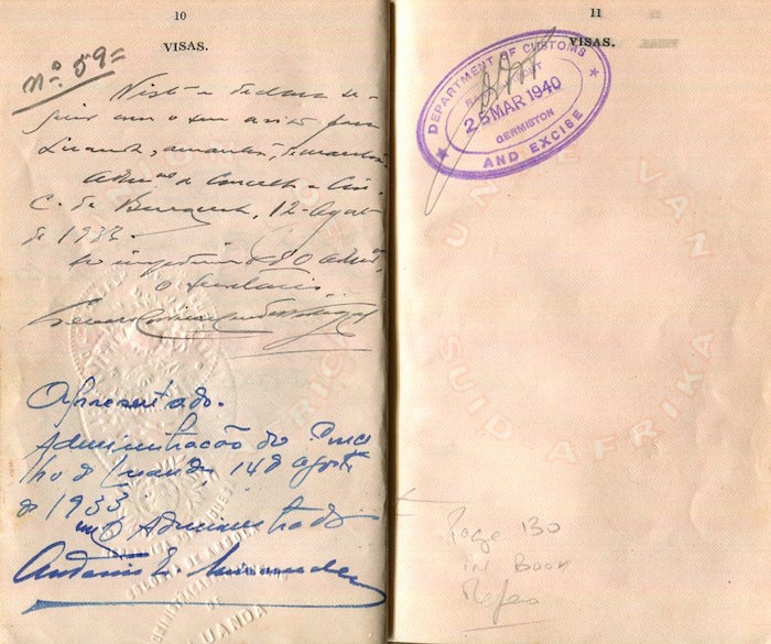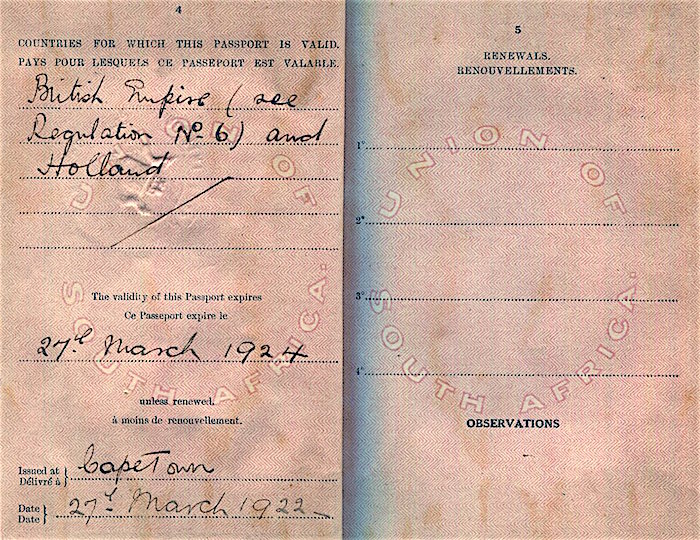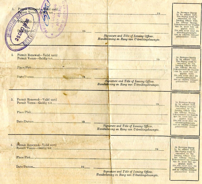 South Africa Passport Union Of South Africa To Northern Southern Rhodesia 1936 Back