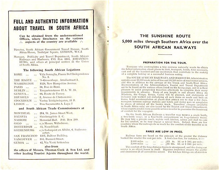 South Africa Transport Railroads South African Railways Brochure Sunshine Route 1935 Inside 2