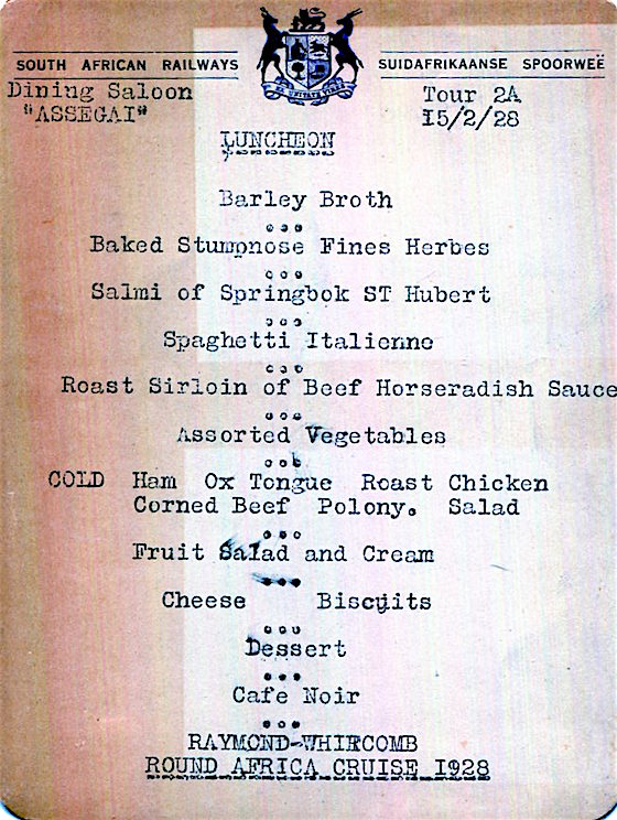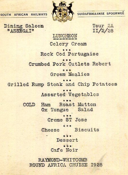 South Africa Transport Railroads South African Railways Menu 1928-3