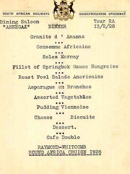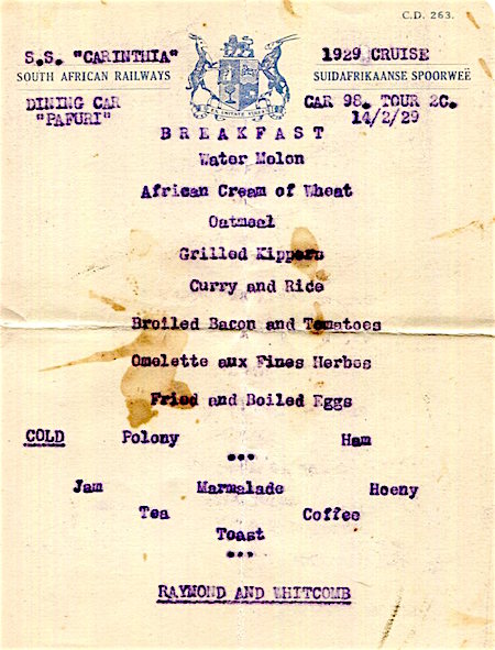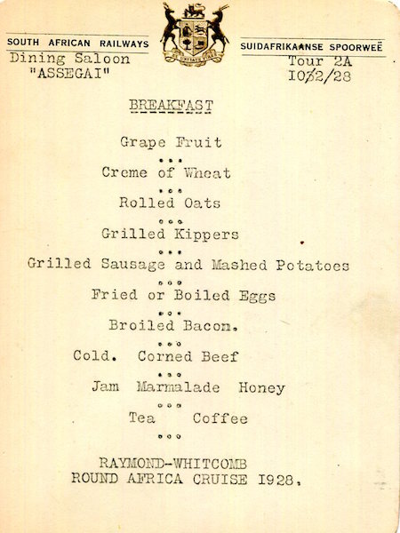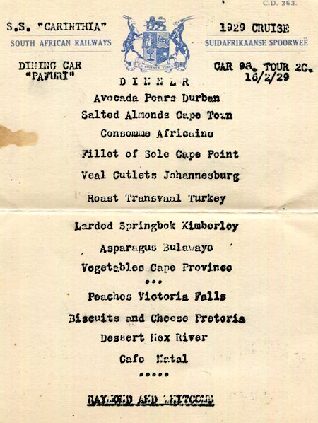 South Africa Transport Railroads South African Railways Dining Card 1929