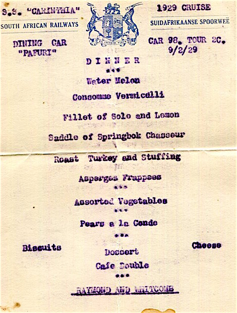 South Africa Transport Railroads South African Railways Menu 1929-3