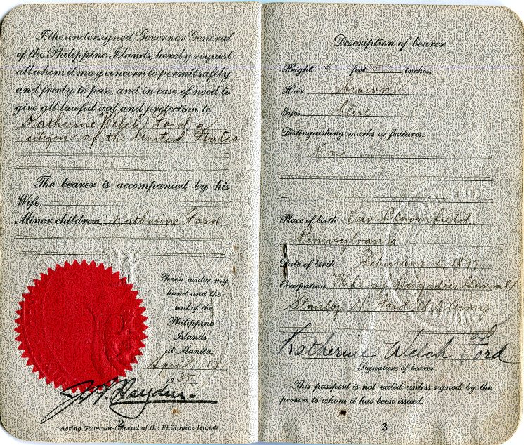 The Philippine Islands US Passport April 12 1935 № 3460 Inside 3