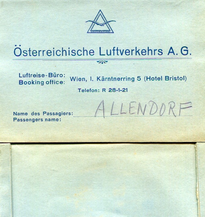 Austria Transport Airlines Austrian Airlines Ticket Envelope 1929