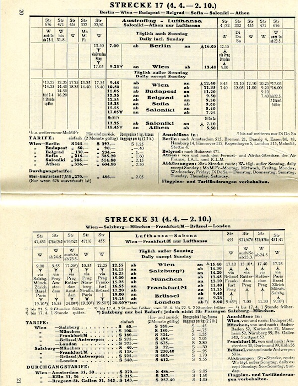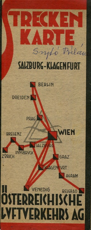 Austria Transport Airlines Österreiichische Luftverkehrs AG Route Map 1930
