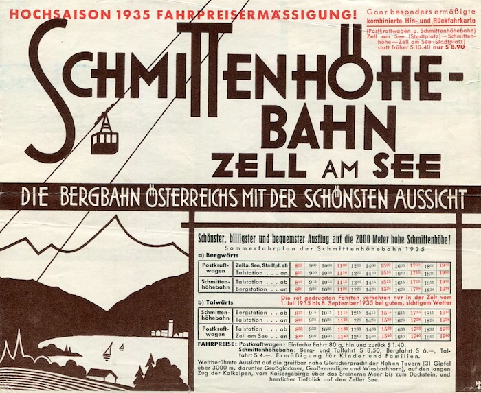 Austria Transport Funicular Schmittenhöhebahn Zell Am See Timetable 1930