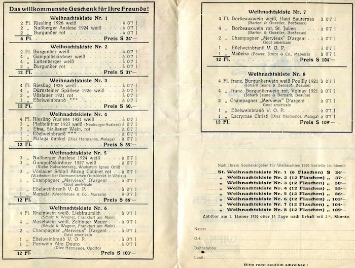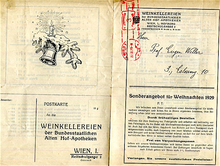 Austria Vienna Commerce Alten Hof Apotheken Brochure Christamas Wine Sales 1929 Inside