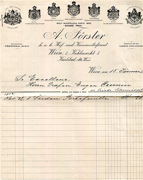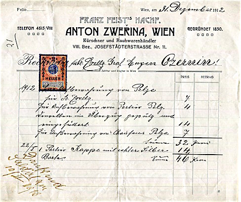 Austria Vienna Commerce Anton Zwerina Receipt 1912