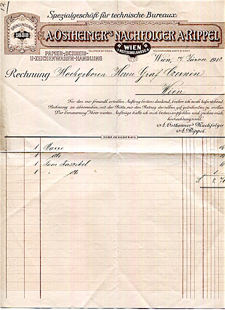 Austria Vienna Commerce A Ostheimers Nachfolger A Rippel Receipt 1913