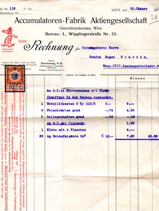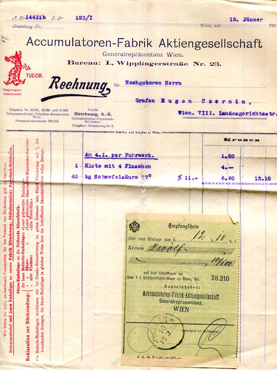 Austria Vienna Commerce Accumulatoren Fabrik Receipt 1912