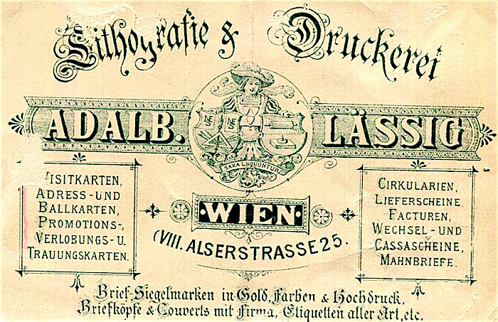 Austria Vienna Commerce Adalb Lässig Receipt Printers 1901 Front