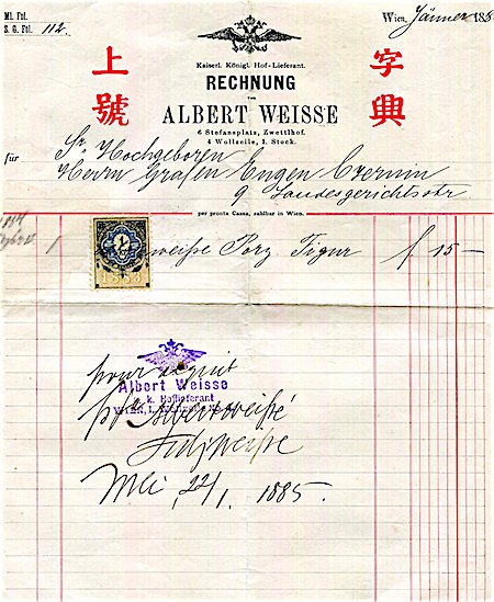 Austria Vienna Commerce Albert Weisse Receipt 1885