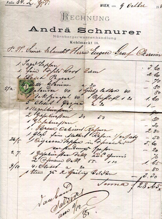 Austria Vienna Commerce Andrä Schnurer Receipt 1885