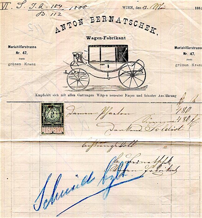Austria Vienna Commerce Anton Bernatschek Receipt Coach Fabric 1885