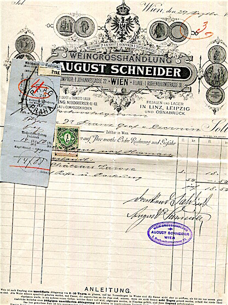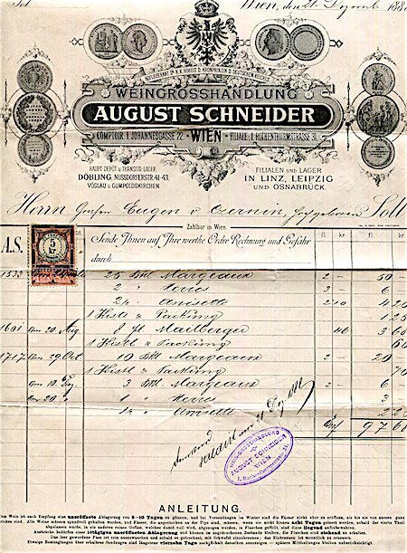 Austria Vienna Commerce August Schneider Receipt Wines 1886