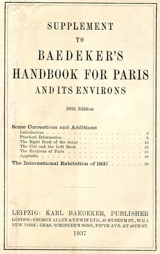 France Paris Exhibition Supplement to Baedekers Handbook for Paris 1937