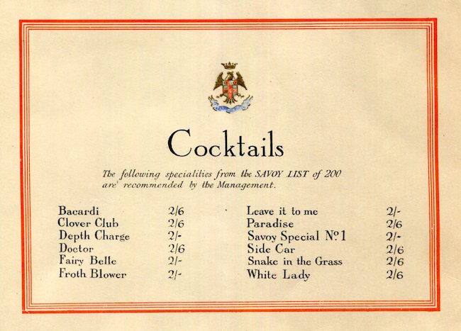 England London Savoy Hotel Leaflet Cocktails 1927